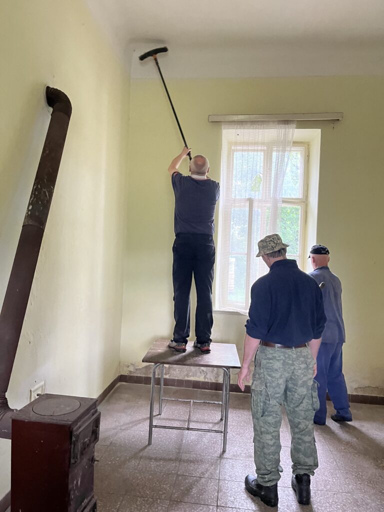 Jak hlásá nápis na zdi, plán práce a zábavy byl beze zbytku naplněn. Pabko nakonec místnost zametal tak důkladně, že došlo i na strop.