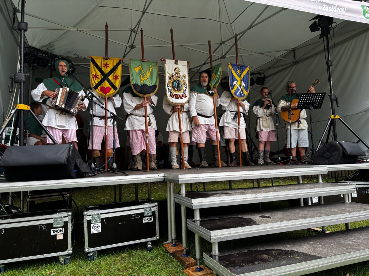 O víkendu 13. a 14. září probíhaly v Zastávce u Brna tradiční hornické slavnosti. Náš soubor kahancových tanců byl opět pozván, abychom svým programem zpestřili bohatou nabídku kulturních programů. Opět jsme mohli spatřit bývalého mistra světa v cyklistické akrobacii, prohlédnout si množství vystavené staré vojenské i hasičské techniky, účastnit se kulinářských kurzů a mnoho dalších pozoruhodností. Velmi jsme obdivovali opravdu obrovskou májku, kterou na oslavu vztyčili na nádvoří. Fotografovat ji bylo možno leda přes ulici – tak byla vysoká. Velmi nás potěšilo, že u infocentra jsme nalezli vystavené fotografie našich kahancovníků, které místní nabídku zdobí již léta.