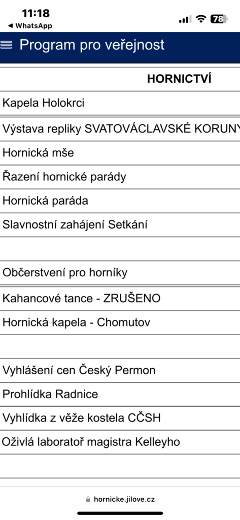 Na pátek třináctého září 2024 jsme měli naplánovánu výpravu do Jílového u Prahy, kde se chystala velká hornická paráda, královský průvod a další honosné radovánky. Vše při příležitosti setkání hornických měst a spolků. Každoročně se takové slávy v některém z hornických měst účastní i zájmové zahraniční skupiny. Kahancové tance KPZH měly být také součástí programu. Chystali jsme se, jak je u nás samozřejmostí, s pečlivostí sobě vlastní. Dvě zkoušky opravdu proběhly. Na první jsme se domluvili co a jak a na druhé to hbitě secvičili. Připravili jsme slavnostní korouhve obcí, které tvoří části Zlatohorska. Jen ta klubová se starým zlatohorským znakem se stále ještě vyšívá a není k dispozici. Parman tedy požádal Haničku, zda by nějakou náhradu urychleně nespíchla. Hanička si vyžádala nákres vystříhala jakési kusy látky a hlásila, že šicí stroj má v opravě. Parman dovezl v podvečer opravený šicí stroj a Hanička do rána vrčela. No, a klubová korouhev byla na světě jak cumel.
